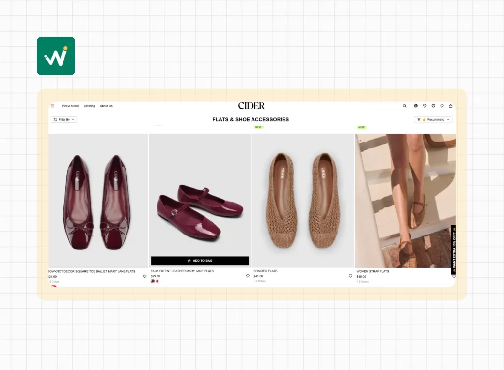 Example: CIDER adds the “Add to bag” button to encourage buyers to make the purchase right way if they like a product.